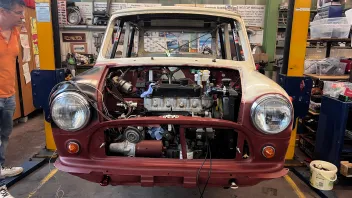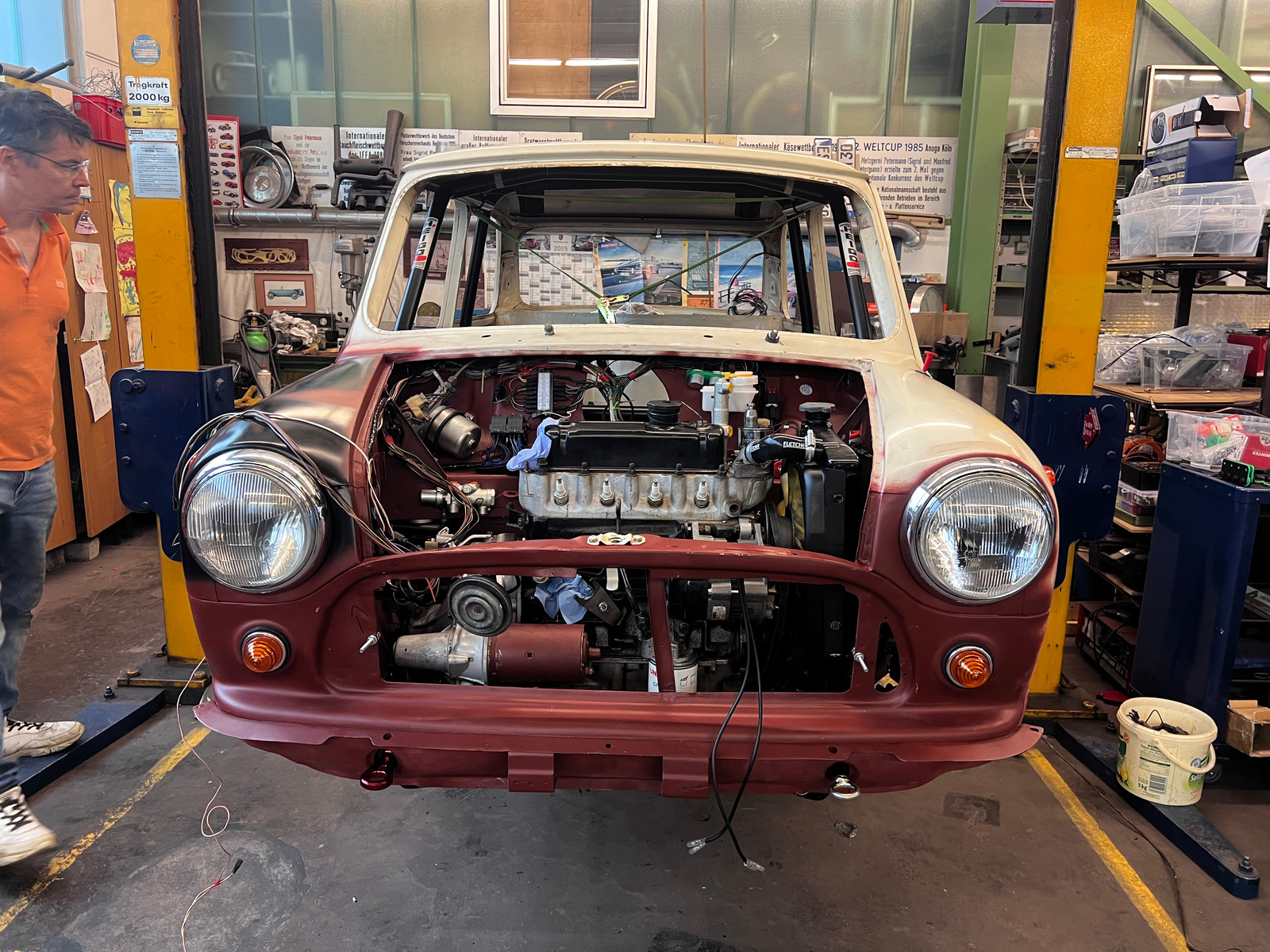 Im gleichen Zug ist der mini für die übrigen Karosseriearbeiten wieder auf das Drehgestell gekommen