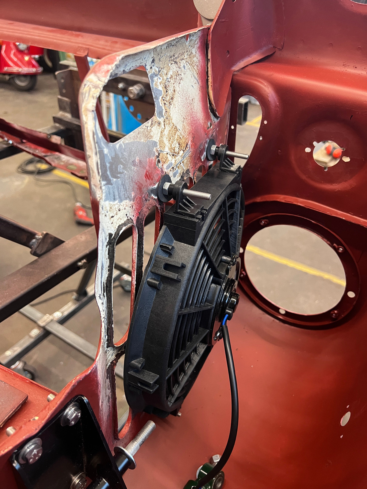 Kühlerrahmen eingeschweißt und Metrolüfter.