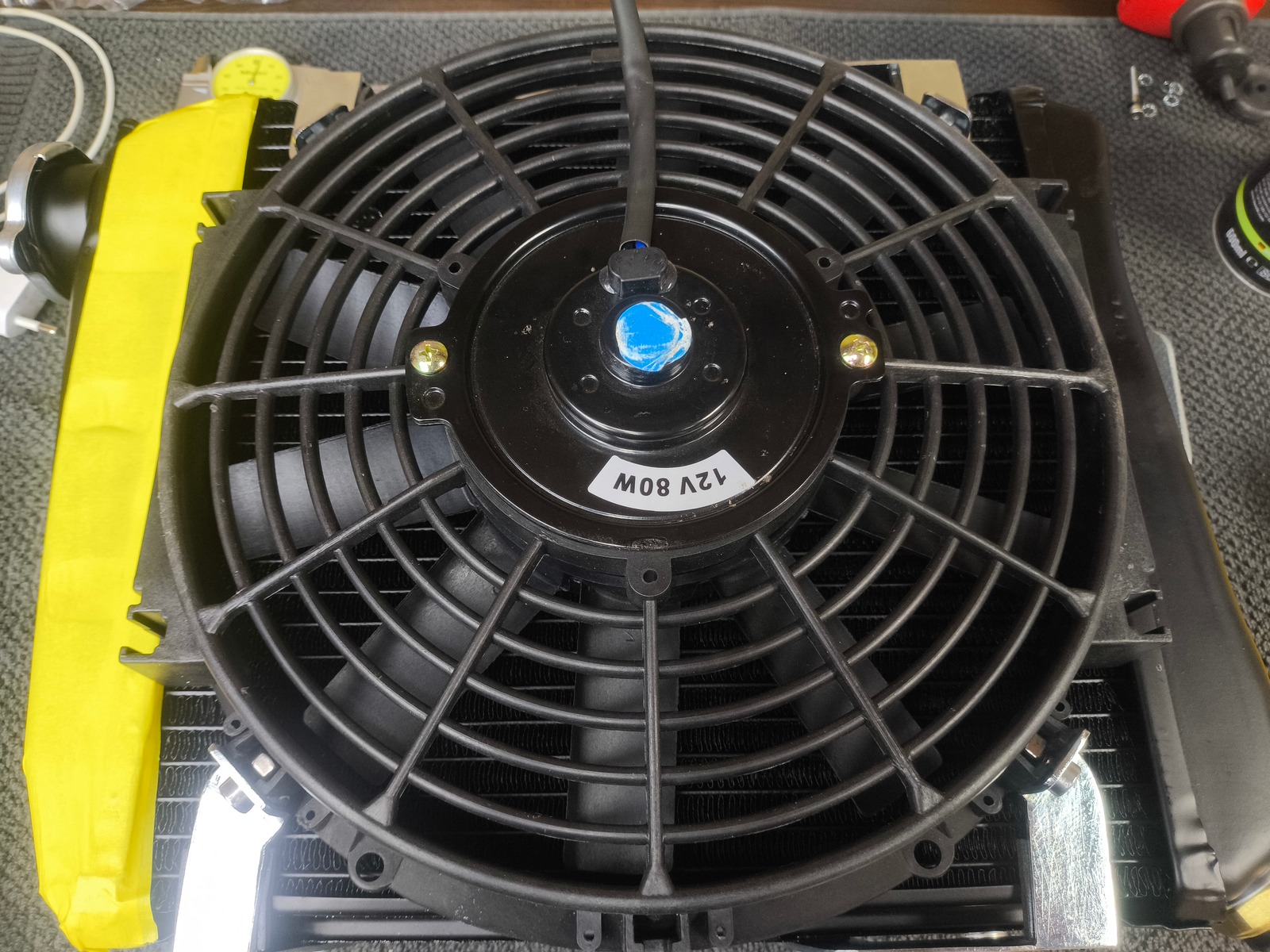 Das Problem ist, dass ich den E-Lüfter ja zustätzlich zum normalen Lüfterrad auf der rechten Seite des Kühlers montieren müsste, da der Mini ja aber nen Mk4 ist und ich die originale Lüfterzarge verwende ist da leider ums verrecken kein Platz um den E-Kühler zwischen dem Kühler und dem Innenkotflügel unterzubringen, ich müsste also nen riesen Stück vom Kotflügel entfernen und dann wird das Spritzwasser wieder zum Problem. Ja, dadurch dass er nicht direkt anliegt und da ca. 5cm Luft dazwischen ist wird er nie 100% effizient arbeiten, aber sind wir mal ehrlich der 1000er wird eh nie überhitzen.