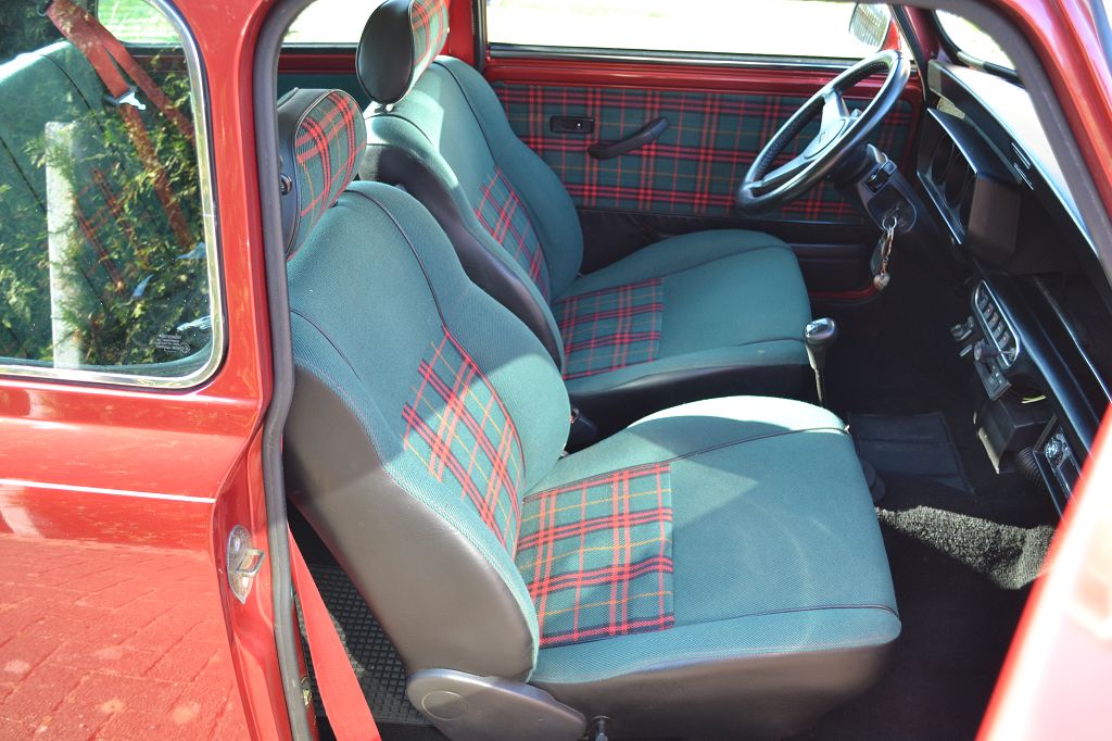Ausstattung ab Werk Mini Balmoral 1,3 L 39KW, 91000Km, Farbe Nightfire Red, Radiokonsole, Union Jack Embleme auf Dreiecksbleche sonst nichts. Aber über die Jahre sind noch zusätzlich natürlich ein RC 40 Auspuff und ein Aluventildeckel dazu gekommen. Wegfahrsperre ist heraus programmiert da diese versagte und eigentlich all nach den den Jahren sowieso nicht mehr funktionieren.