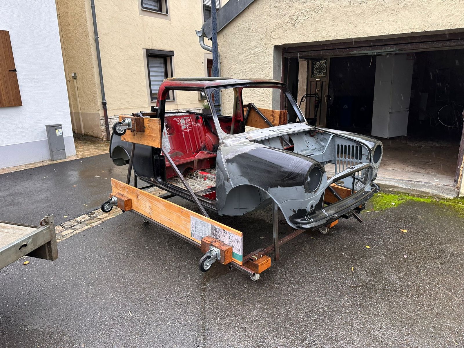 Vor paar Tagen haben wir einen Mini L&H Airotic von 1985 von einem bekannten bekommen. Das Auto ist bereits komplett zerlegt und auf einem Gestell. Der Vorbesitzer hat auch schon sehr viel neue Teile angeschweißt, sodass nicht mehr viel Fehlt bevor wir den lackieren und zusammenbauen können.