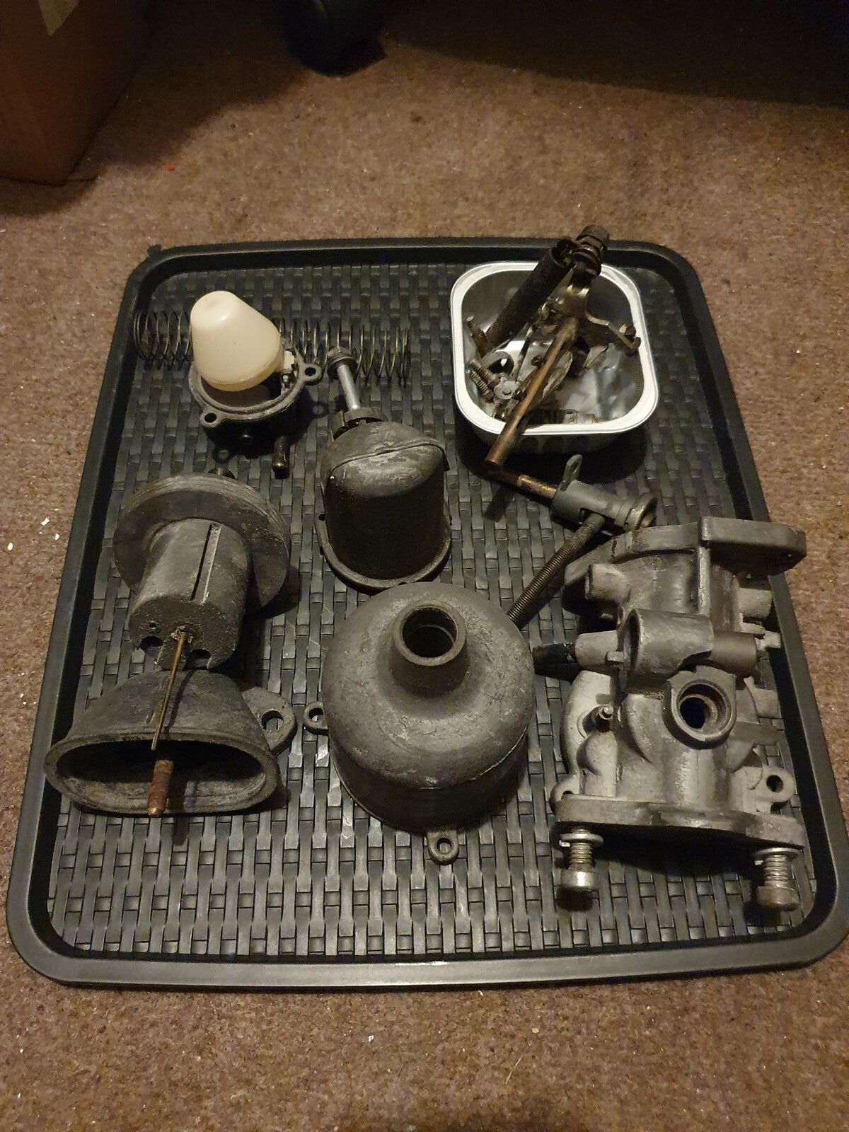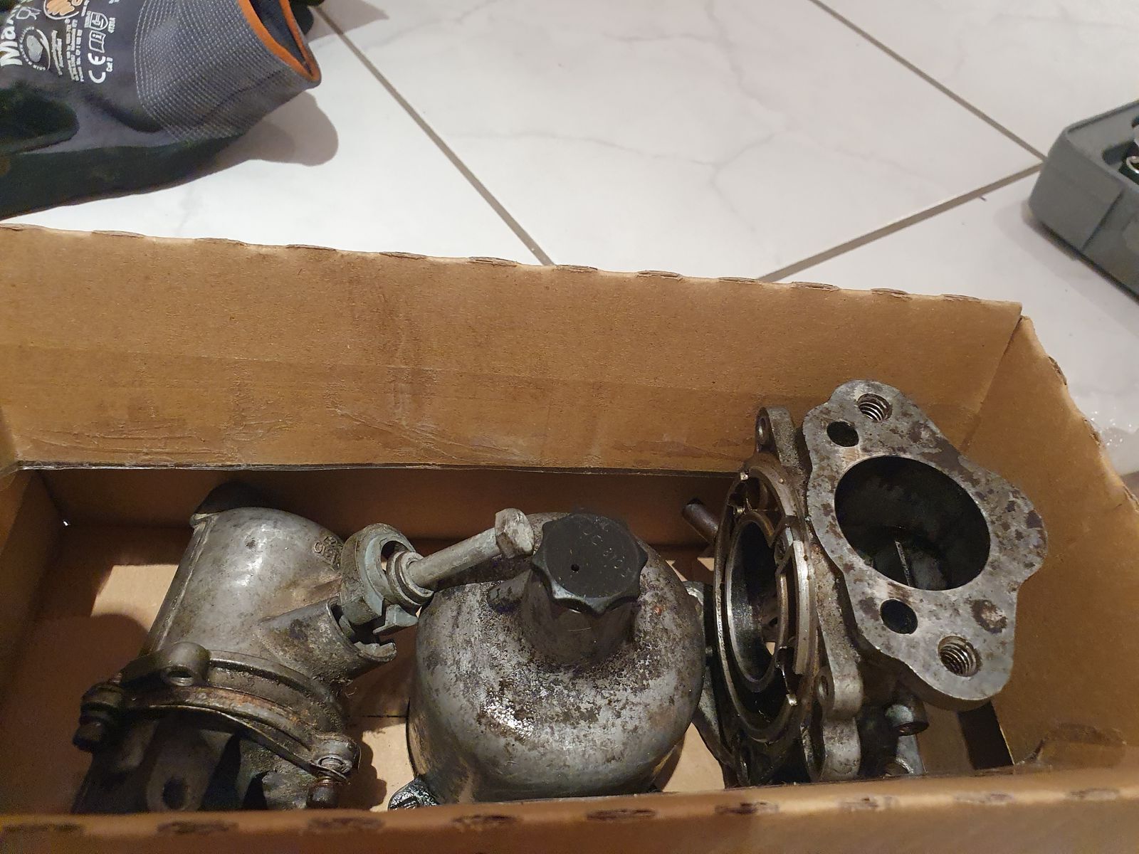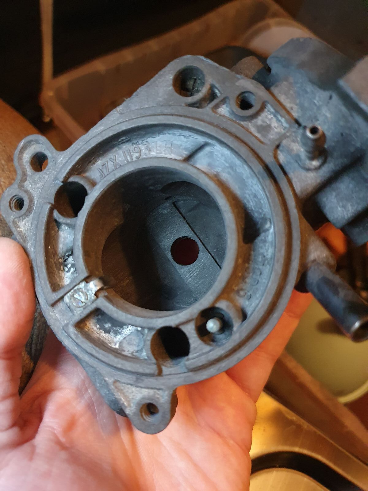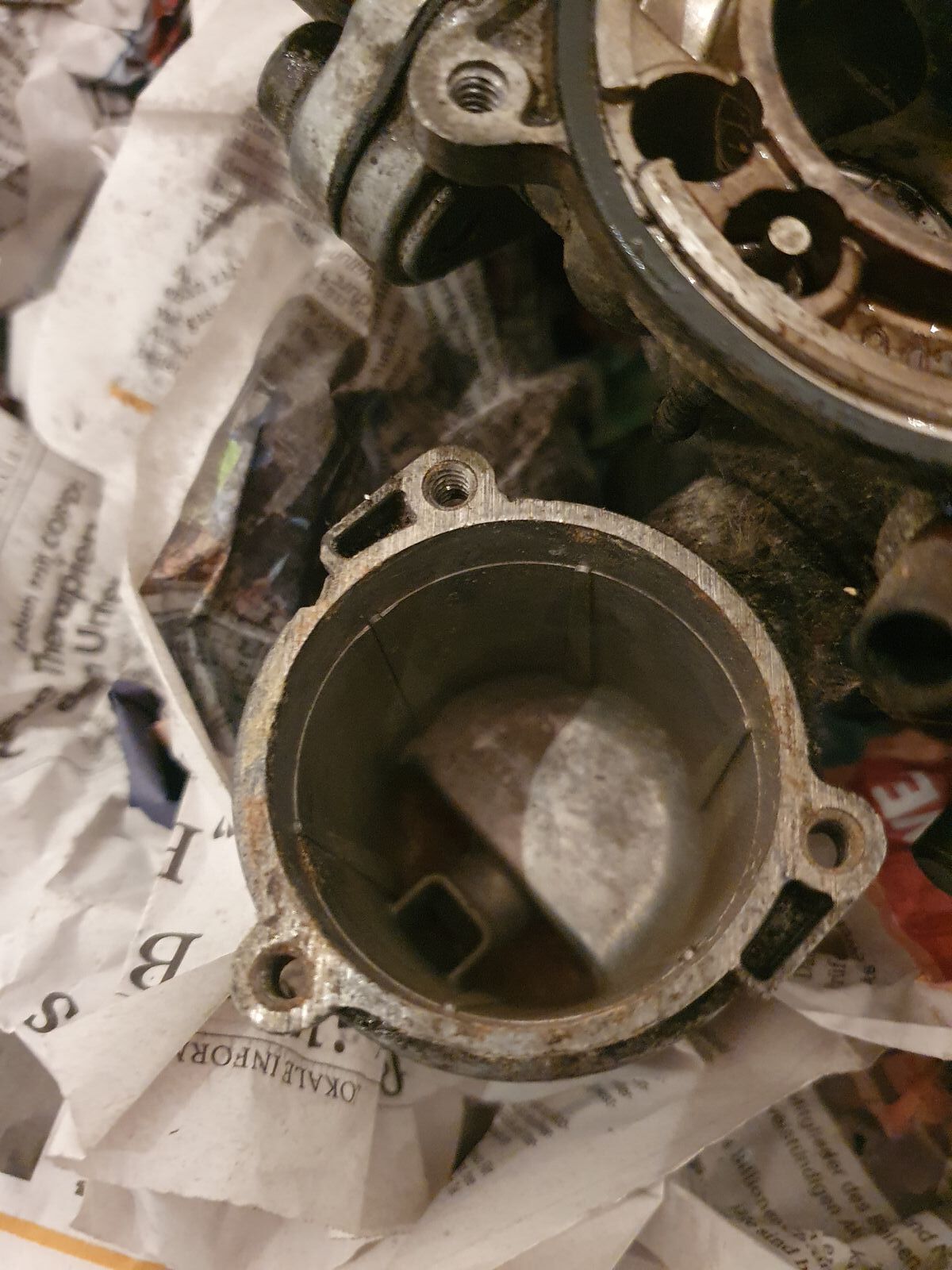 Was habe ich gemacht: Günstig einen HS4-Vergaser erstanden, um diesen zu überholen. Die Bilder zeigen den Vergaser direkt nach dem auspacken und zerlegen. Der Vergaserkolben glänzt, die Ansaugbrücke/Steg im Vergaser auch. Alles ist recht verdreckt, aber nichts, was nicht hinzubekommen wäre...ja, und da fangen meine Probleme an: