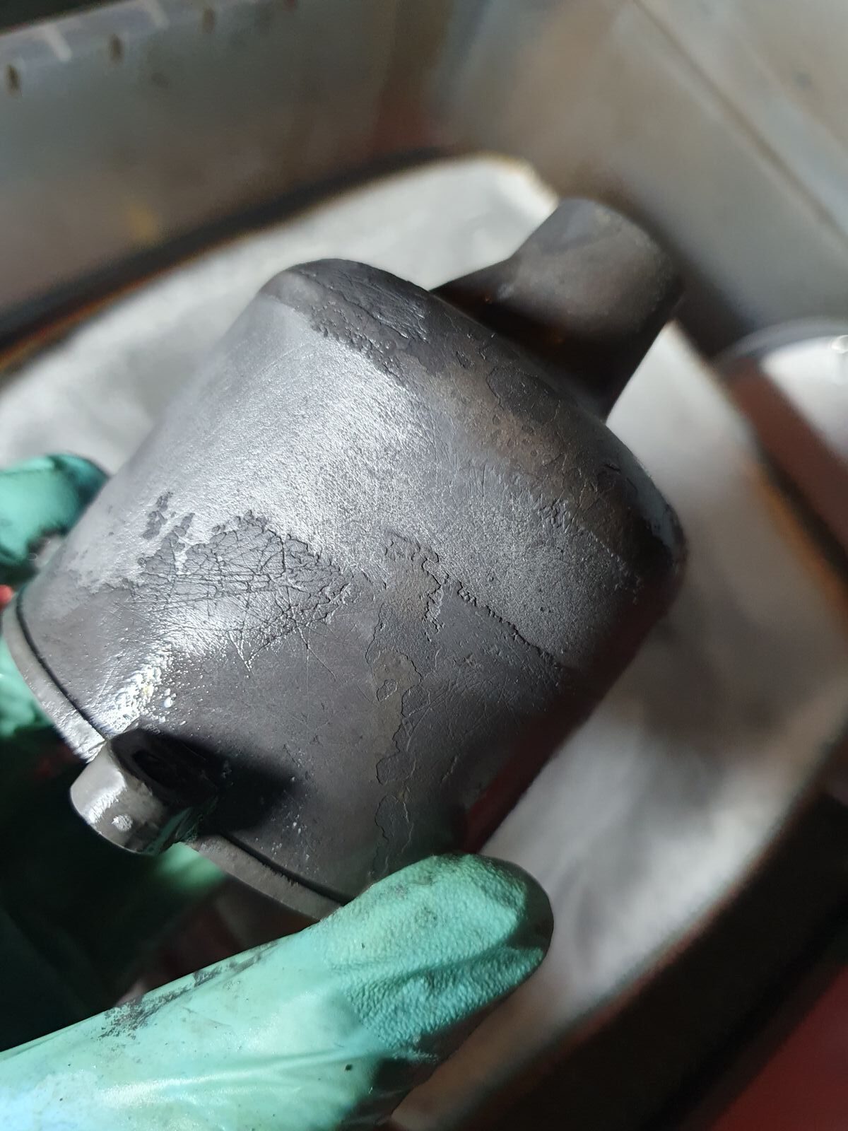Die ersten beiden Reinigungsschritte habe ich hinter mir und vermute, dass ein "Sand"-Strahlen (glaub, dass sind so Nussschalenreste) helfen könnte.