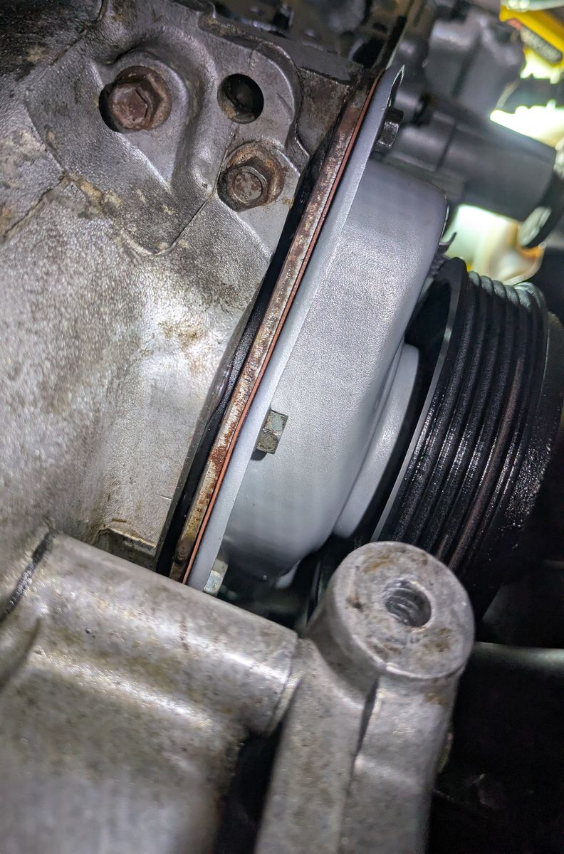Deckel scheint erstmal dicht. Genaues sieht man erst bei einer längeren Probefahrt. Die Wasserpumpe leckt vorne noch etwas an dem kleinen "Auge" das würde ich aber erst beobachten. Ist hier der Rat etwas nachziehen? Habe sie mit 22NM festgezogen