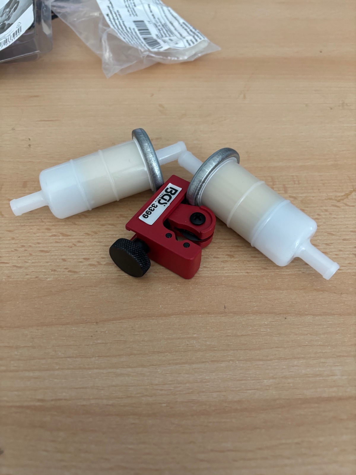 Jetzt Espresso und dann geht es an die Spritleitung. Vorher noch kurz Spiel in der Vorderachse checken und hintere Schwingenwinkel schon mal mit WD40 benetzen .