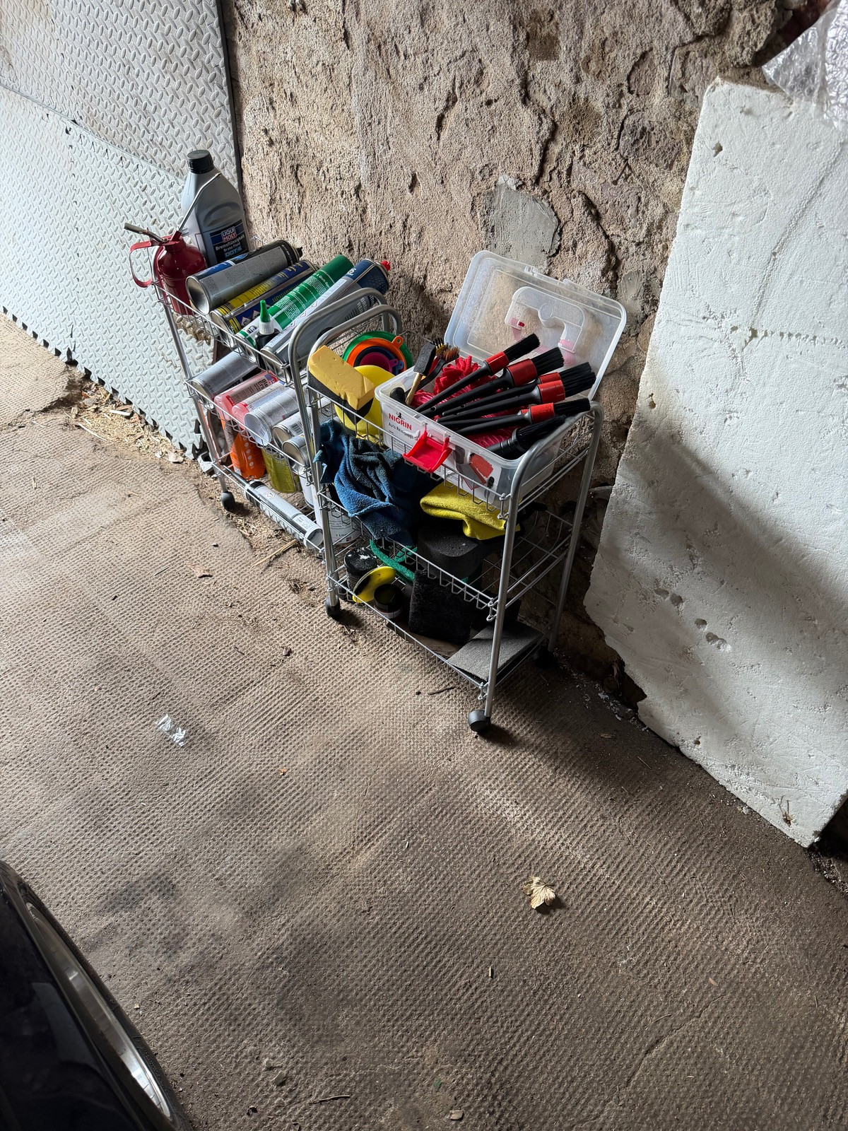 • Wieder bisschen mehr Ordnung geschafft….heute kein Bock auf Bodenturnen….bisschen Rücken vom gestrigen Hyundai schrauben…was lieb ich doch meine 10“ Revos…die kann man locker tragen mit einer Hand und aufstecken. 19“ Alus mit Reifen eher nicht so…😑