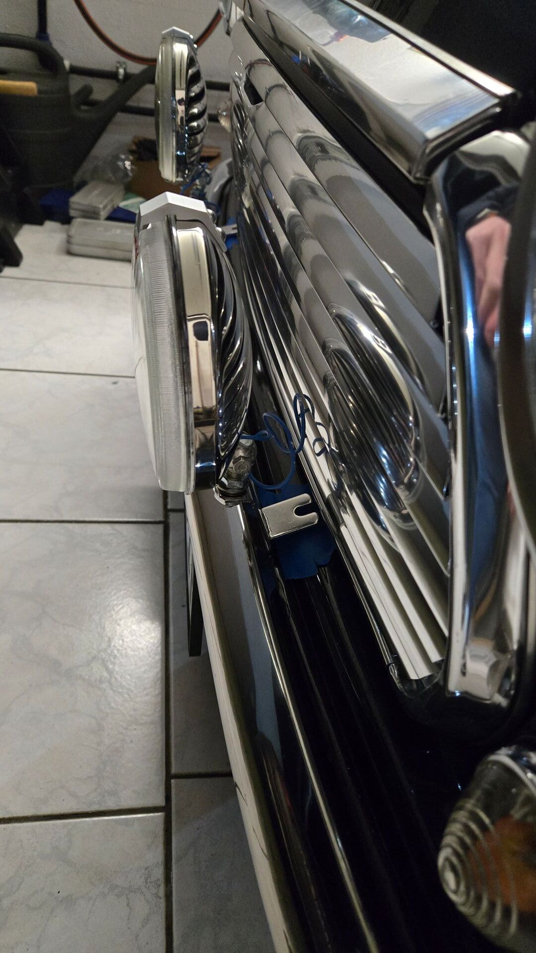 hatte ja von meinem Onkel die neuen alten Zusatzscheinwerfer geschenkt bekommen und ich überlege, die jetzt mal zu montieren. Bislang sind noch keine Löcher für diese Halter vorhanden, also müsste ich die Bohren. Jetzt wäre das ja theoretisch dann eine Stelle, die man direkt unterhalb des Grills sehen könnte und bevor ich irgendwas verändere, habe ich immer schon gerne einen Plan in der Rückhand, falls es doch mal wieder zurückgerüstet werden soll.