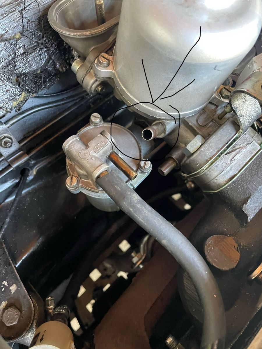 am Vergaser, HS4 sind 3 Anschlüsse ca 6mm einer kommt vom Tank, Benzinpumpe den kenne ich,