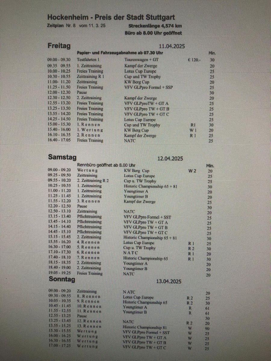 P.S. Nur mal so. Der Boxenplatz in Hockenheim hat 60,00 € aufgeschlagen. Und in zwei Wochen in Spa wollen die Strekenbetreiber 50,00 € Stromkosten pro Wohnmobil/wagen. Zusätzlich zu Nenngeld, Boxenplatz usw.