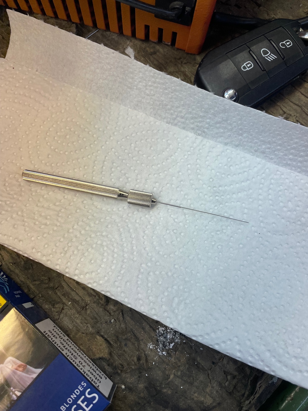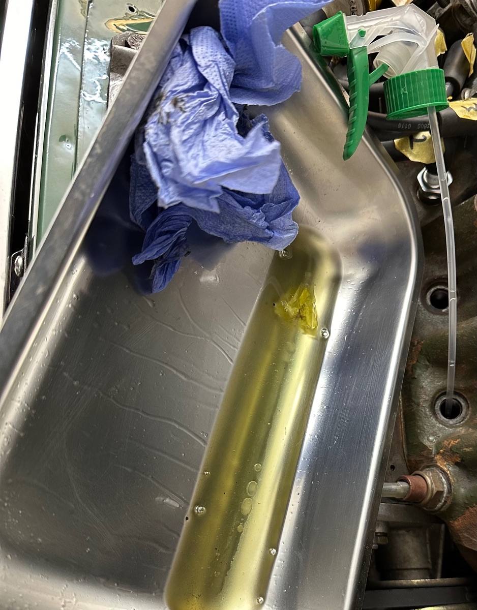 Im Anschluss lief der Motor heute auf dem Weg zum Baumarkt zunächst wieder gut. Beim Starten nach dem Einkauf lief der Motor dann aber plötzlich wieder nicht rund, wenig später bin ich mit stotterndem Motor liegen geblieben. Die beiden in Fahrtrichtung linken Zündkerzen waren feucht, unterm Motor ein Benzinfleck. Ich wurde abgeschleppt. In der heimischen Garage festgestellt das sich hinter der äußersten Zündkerze in der Brennkammer ein richtiger Spritsee angesammelt hat. Abgepumpt. Über die abgepumpte Menge Benzin gewundert. Bier geöffnet. Alles weitere auf morgen vertagt.