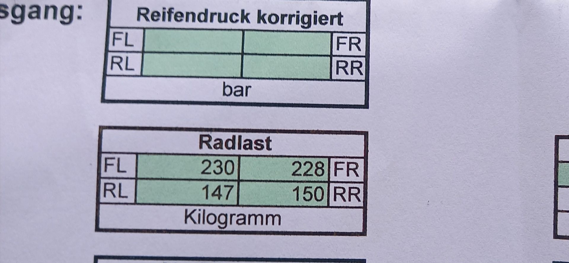Komplette Achsvermessung gestern