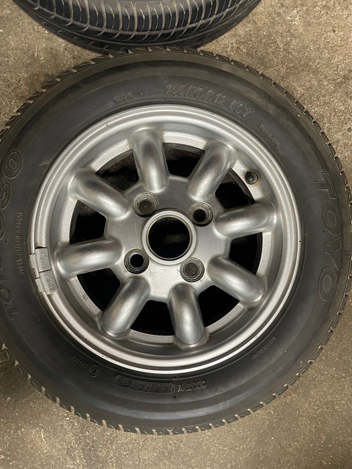 Ich verkaufe hier einen Satz 12" Minilites. Reifen müssen neu, Felgen könnten mal abgedreht werden. Auf Wunsch kann ich gegen Kostenübernahme auch die Reifen abziehen lassen. Die Felgen einzeln verschicke ich dann auch. Felgen mit Reifen müssten bitte abgeholt werden.