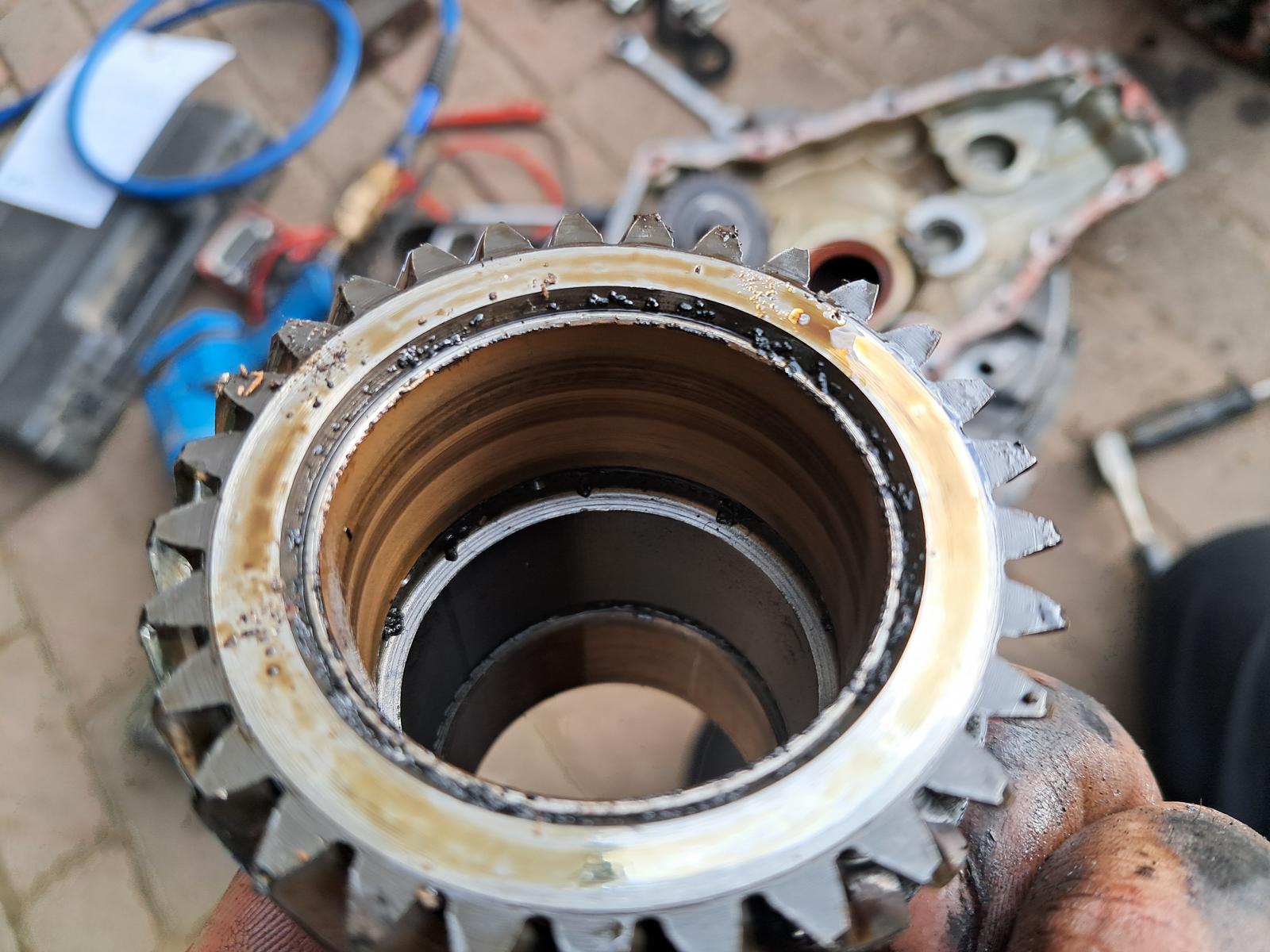 Auf eine geringe Laufleistung deutet einiges hin wie keine Kante in den Laufbuchsen, Zwischenradanlaufscheiben noch sehr schwarz, Zahnräder noch sehr neuwertig, Gleitlagerbuchsen noch mit tollen Oberflächen. Alle Schrauben und SIcherungsbleche unberührt.