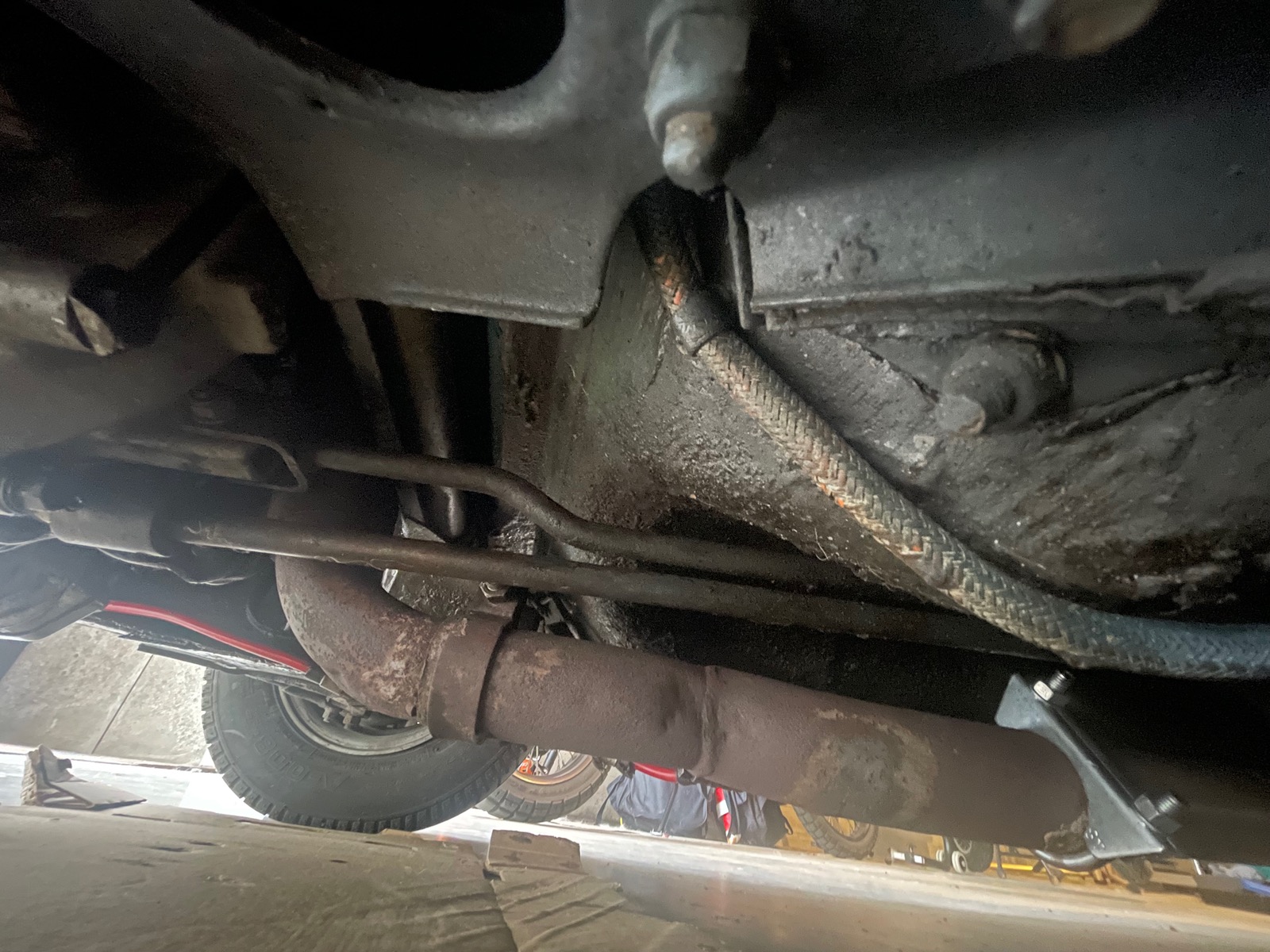 Das vorderrohr ist aber ggfs nicht richtig gedreht, weshalb der Endtopf auch relativ weit nach rechts sitzt. Ein Bild von unten ums Schaltgestänge könnte Aufschluss geben 😉