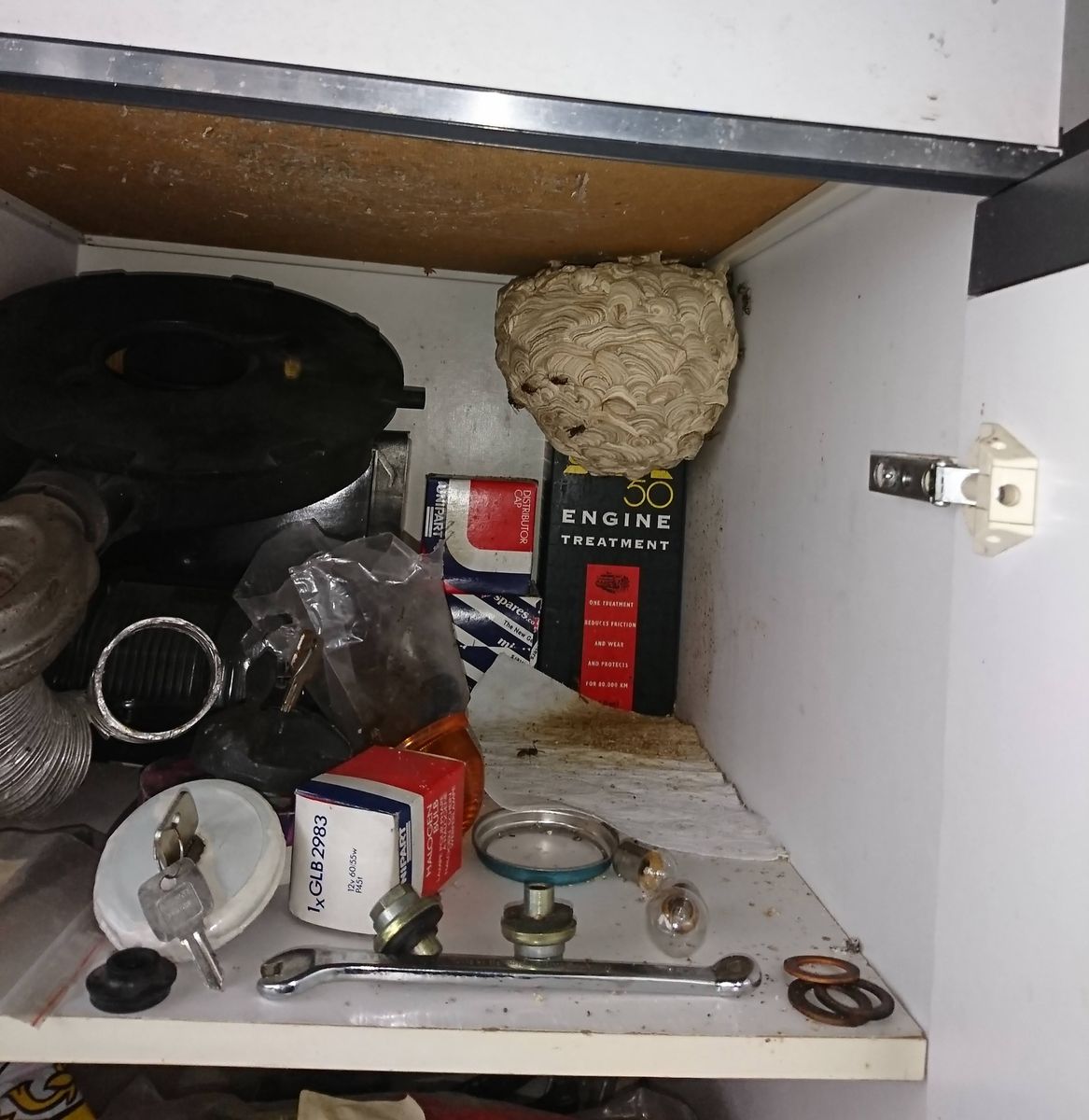 • Generell hilft es wenn ihr vermehrt Wespen feststellt und denkt sie könnten einen Platz fĂŒr ein Nest suchen, eine PapiertĂŒte oder Ă€hnliches aufzuhĂ€ngen. Wespen sind sehr territorial unterwegs, sprich wenn sie denken vor Ort sei schon ein Nest dann ziehen sie meist weiter. Hilft im akuten Fall natĂŒrlich nicht, aber wenn im FrĂŒhling wieder welche im Schuppen/Garage oder wo auch immer auf Suche sind hilft das echt ganz gut.