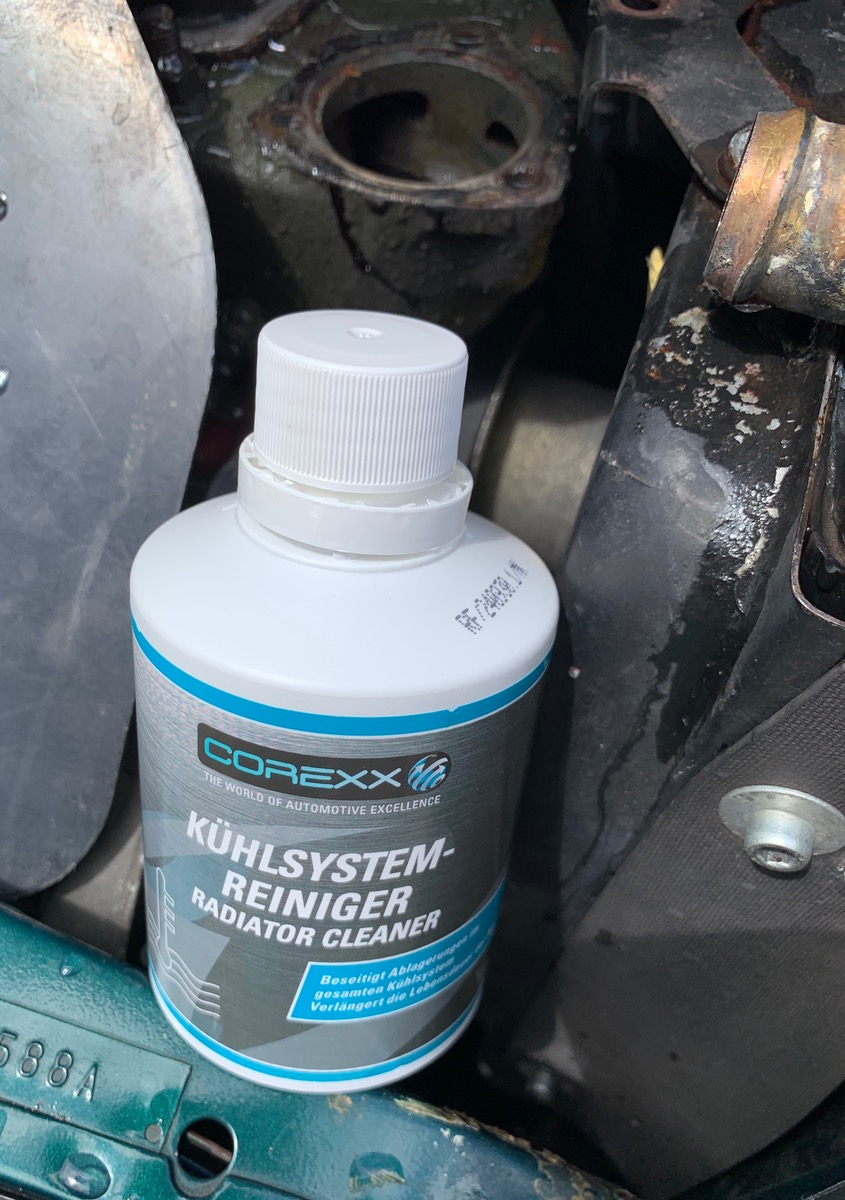 • Ich hab 9,90 Euro investiert und Kühlsystemreiniger genommen. Kleine Runde gedreht, damit Thermostat aufgeht …