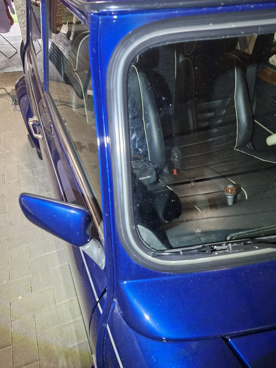 Der Mini ist in gutem Blechzustand, keine Rostbeule, die überall blüht, lediglich an der Leiste der Hauptplushalterung am Boden, müsste der oberflächliche Rost bei Gelegenheit mal abgebürstet werden und neu versiegelt. Ansonsten ist kein Handlingsbedarf.
