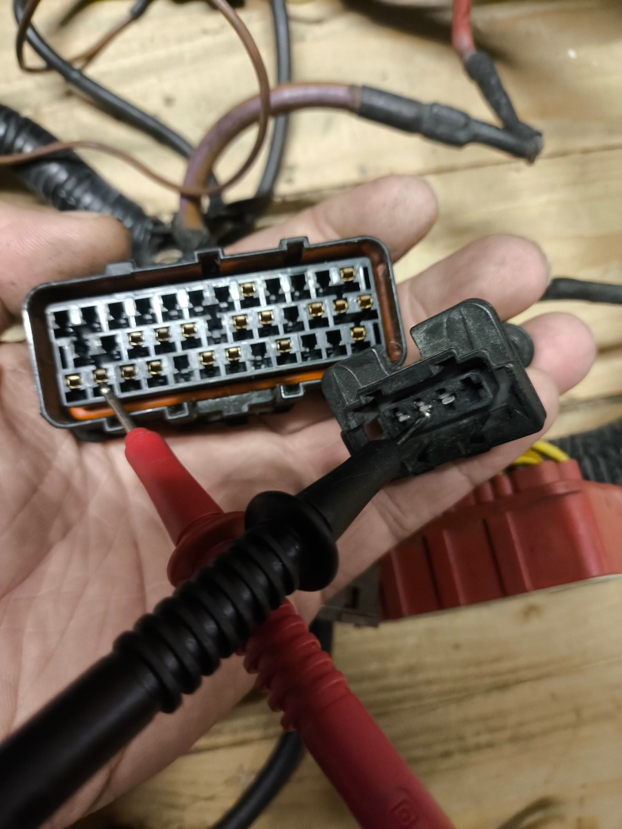 Check mal den durchgang vom schwarzen Stecker in der ECU die ersten 2 von links zum Motor hin. weiß schwarz, weiß grau, die sind für die Zündspule.