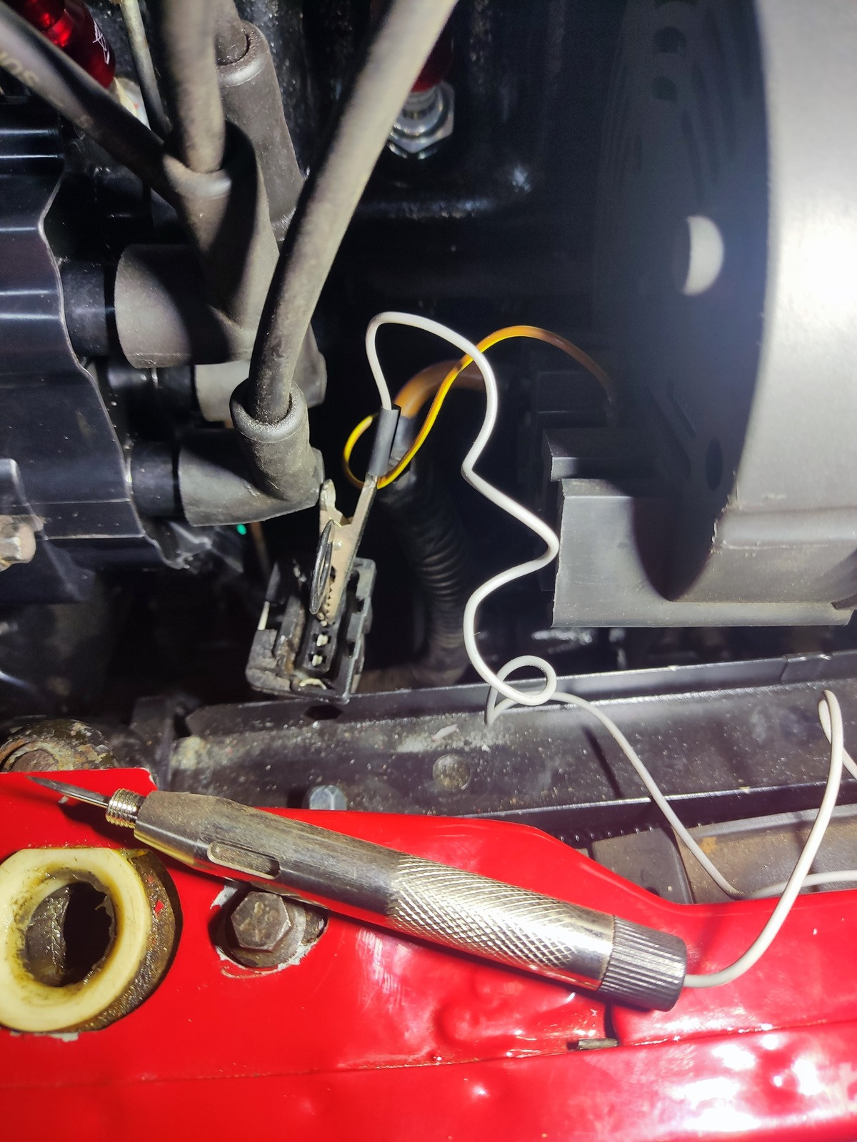 Und miss bitte auch noch mal direkt am Stecker der ECU, indem du vorsichtig in die weiss/schwarze und weiss/graue Leitung piekst