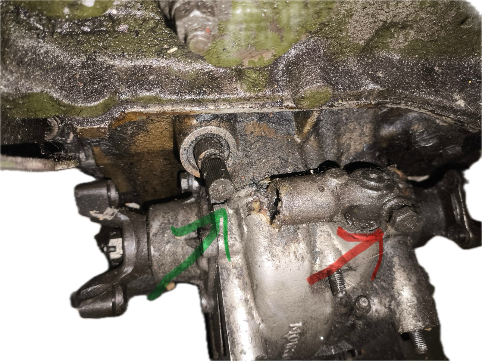 • Schau mal nach der Umlenkung oberhalb des Differential ob die beiden Klemmschrauben fest sind.