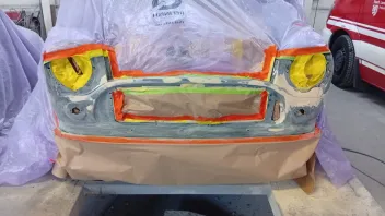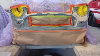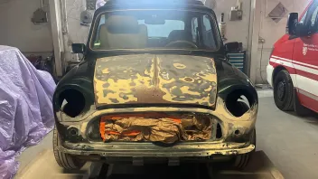 Nachdem Walter wieder in Form gebracht wurde haben wir die Front zerlegt um diese erstmal vor Korrosionen zu schützen danach wird gespachtelt und lackiert. Auf der Beifahrerseite am Übergang zum Koti wurde mal ohne Ehre beilackiert das werden wir in diesem Zuge auch gleich mit beseitigen.