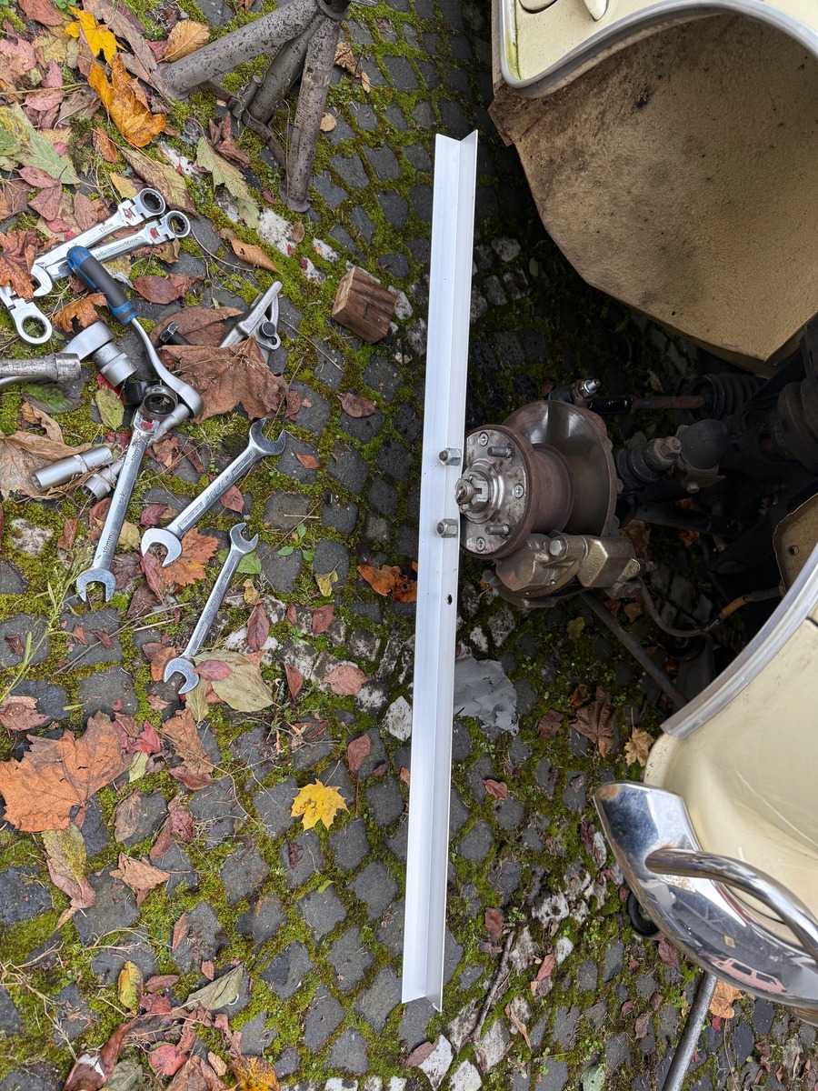 Gestern Spurstangenköpfe ausgetauscht. Wegen Platzmangel in der Garage mit Grube musste im Hof gearbeitet werden.