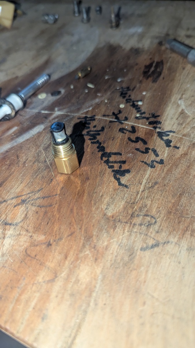Dann habe ich heute mal den Vergaser abgenommen und den Teil für die Schwimmerkammer geöffnet. Davor habe ich das Benzin entleert. Die Menge war etwa ein halber Deckel Bremsenreiniger. Dazu ein paar Fotos. Ein bisschen gereinigt. Wobei der Filter komplett sauber war(?).