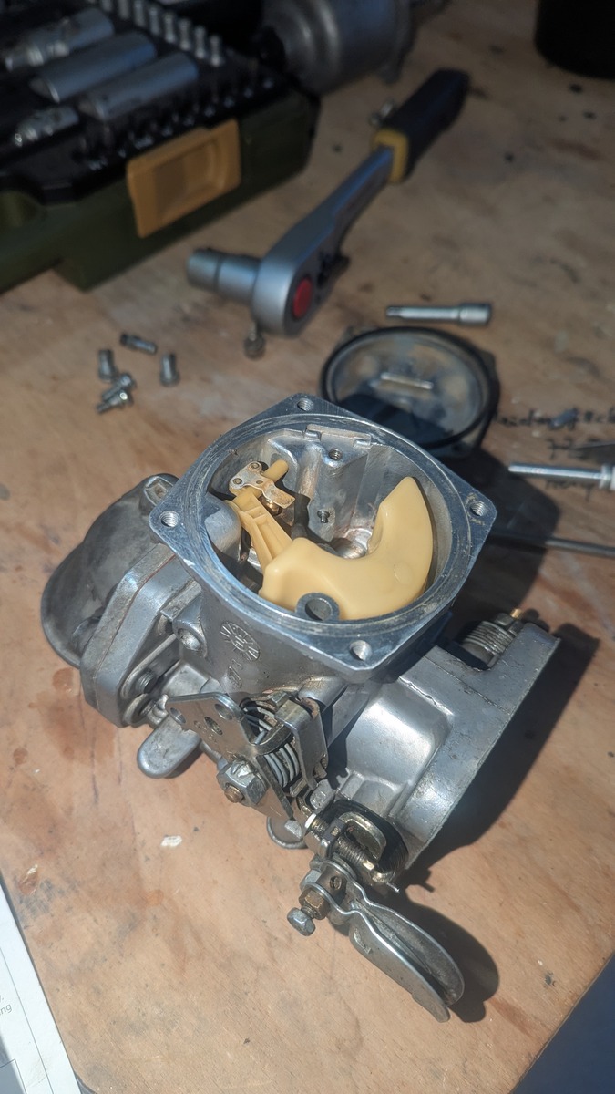 Danach habe ich auch die Schwimmerkammer justiert. Alles wieder zusammengebaut.