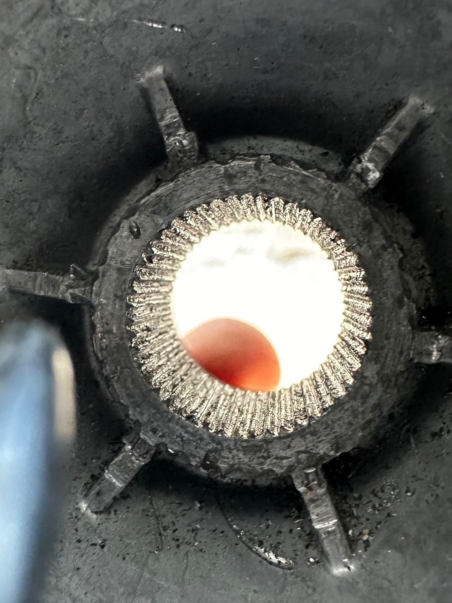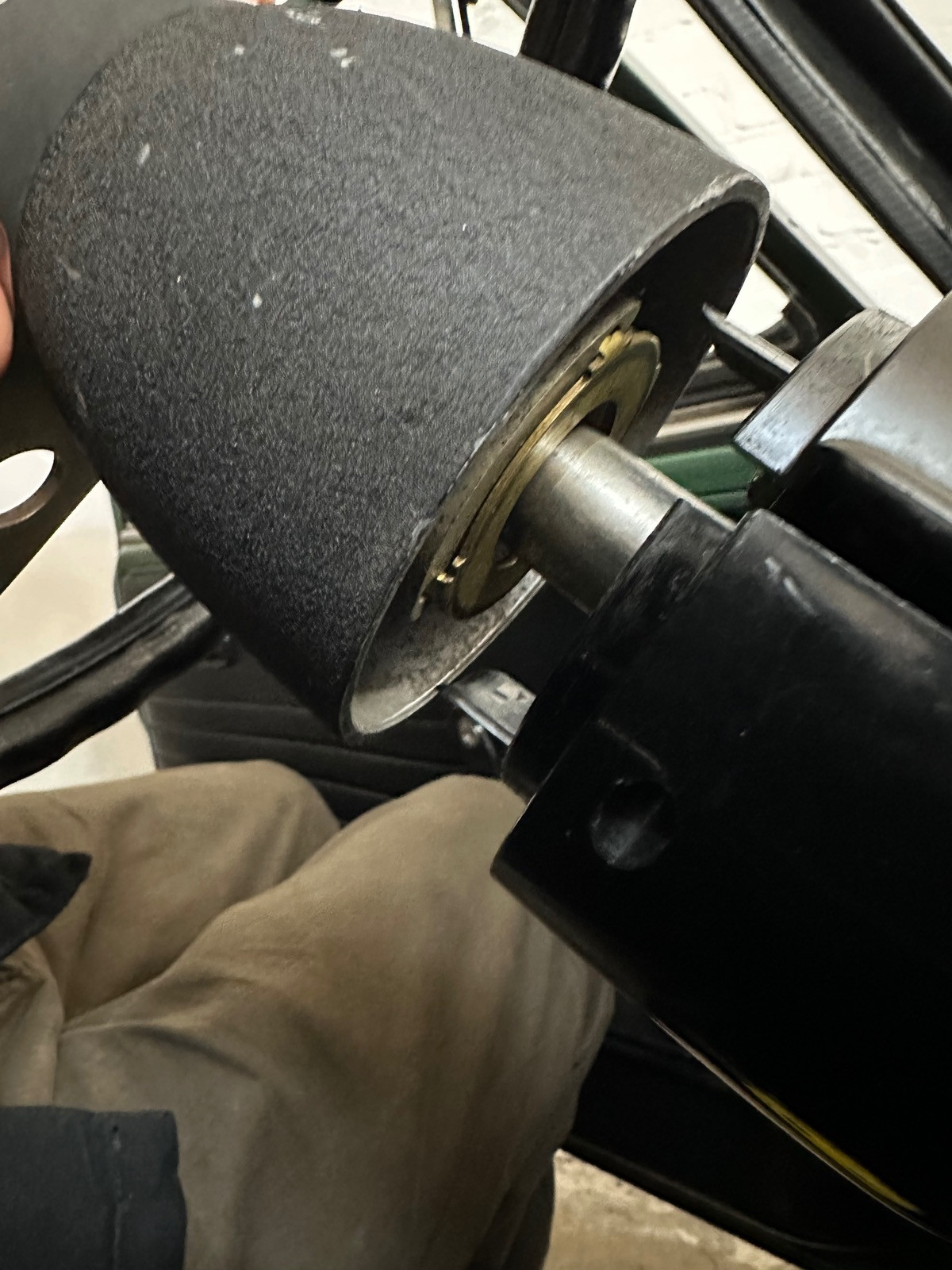 Ich sehe bei der Verzahnung der alten (bisher passenden) und der neuen Hellebore-Nabe erstmal keine Unterschiede (s. Bilder: mit Finger passende Nabe, ohne Finger derzeit nicht passende Hellebore-Nabe). Gefühlt blockiert es aber genau dann wenn die Verzahnung der Nabe und die der Lenksäule aufeinander treffen.