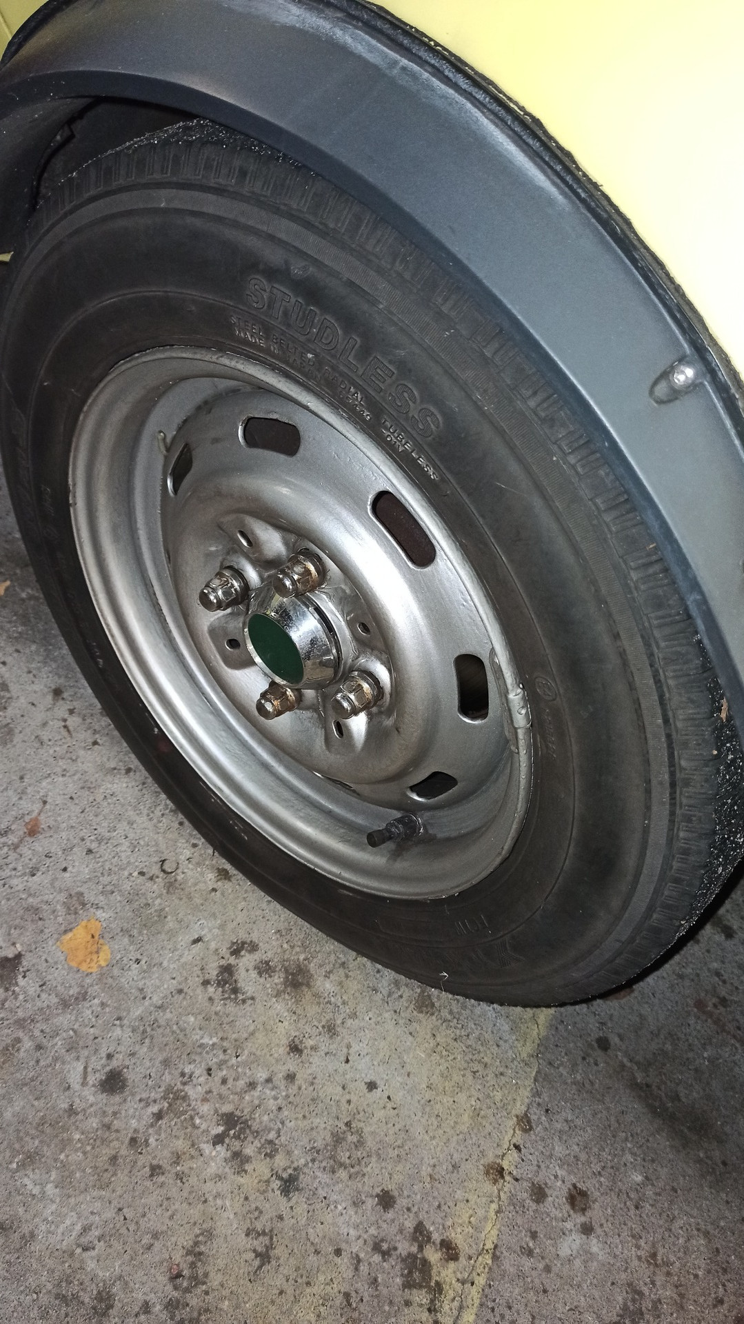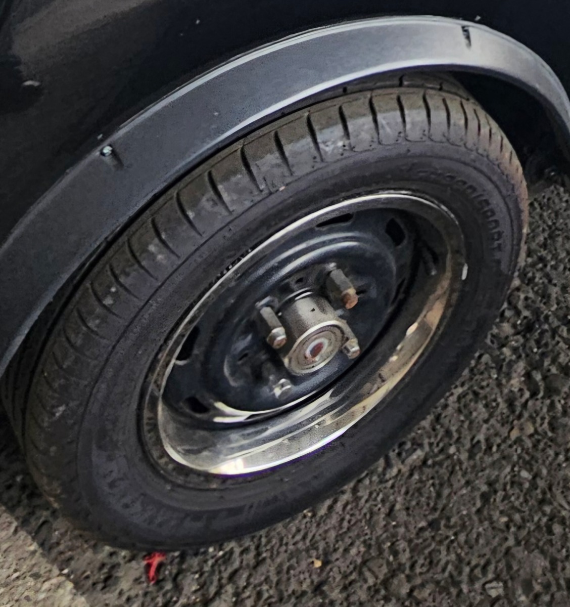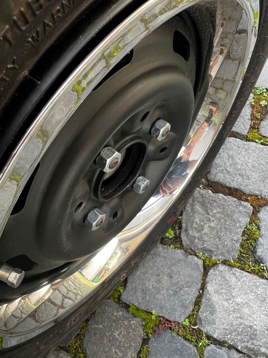 Wir haben welche auf 12" Stahlfelgen mit Felgenring und verchromten Radmuttern.