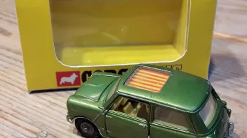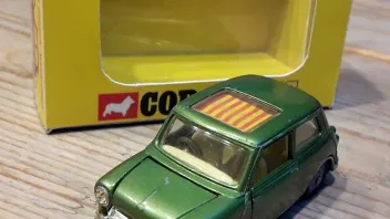 • verkaufe aus meiner Sammlung (Vitrine mal wieder zu klein....) ein originales Corgi Toys Modell- bzw. altes Spielzeugauto BMC Mini Cooper Magnifique in grünmetallic. Maßstab ist irgendwas um die 1:43, bei Corgi Toys variiert das ja immer je nach Modellvorlage. Da ist ein US-Straßenkreuzer schnell mal ähnlich ausladend wie ein Mini. :wink: