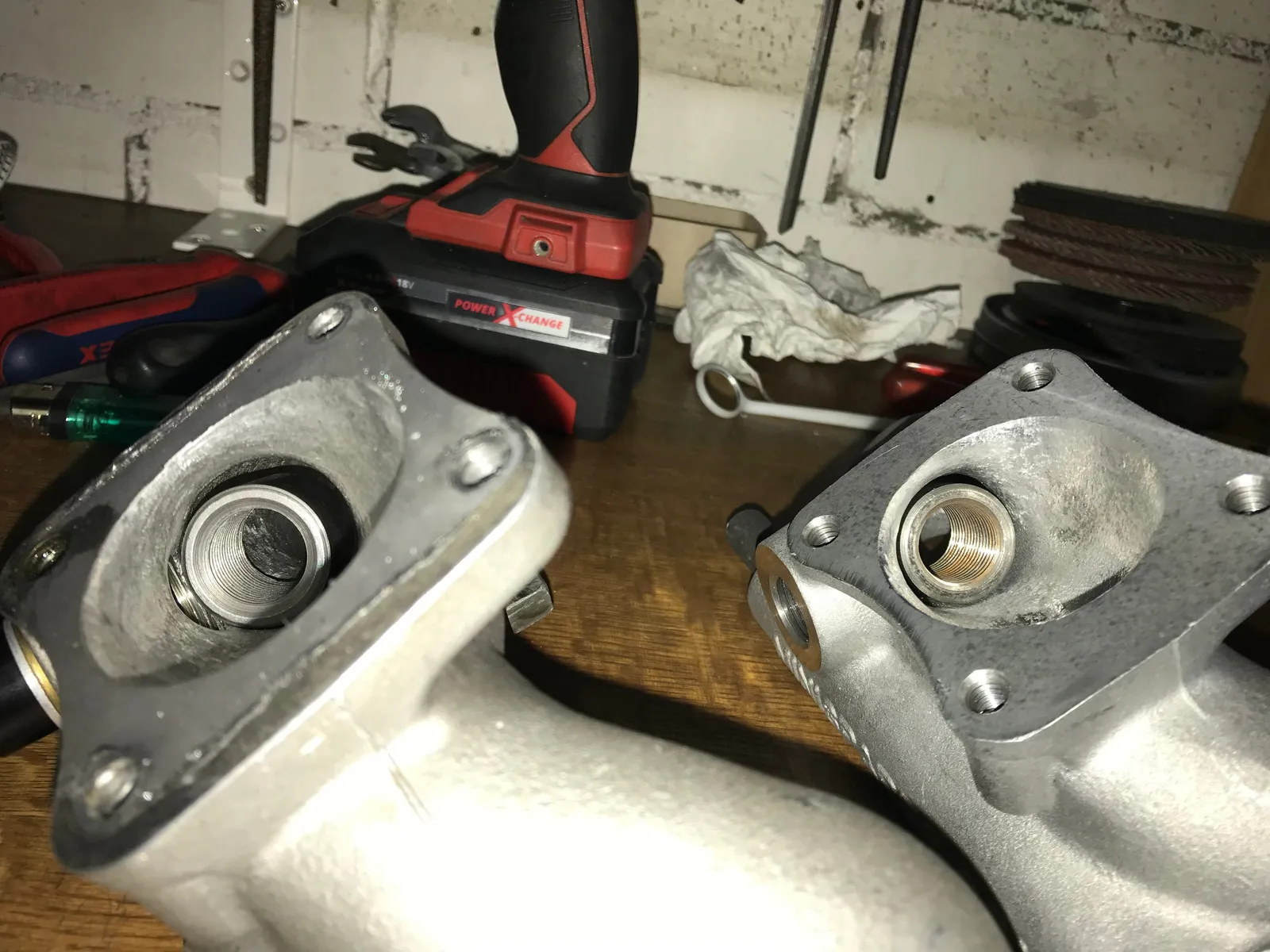 • Ich hatte damals die linke Ansaugbrücke, die ich jetzt 15000km gefahren bin innen auf das Maximum ausgehölt,
