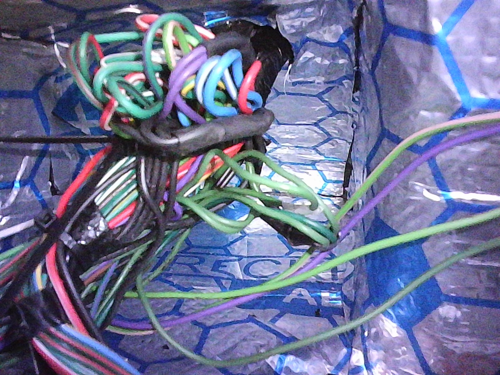 Ich habe noch Fotos vom Kabelbaum (wohl eher Kabelchaos) gemacht, wo man die Kabel-Verzweigungen sieht bzw. erahnen kann. Bei einem Foto habe ich einen weissen Hintergrund hinter die Kabel vom Bremspedal und auch vom Rückfahrlicht gemacht. Da beide in das Kabelchaos gehen, muss ich wohl aufschlitzen um zu sehen, wo die Abzweigung nicht richtig gemacht wurde???