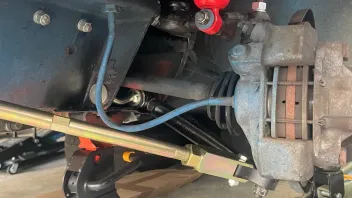 Kann es sein, dass du noch die bremsschläuche von der Trommelbremse drin hast? Die sehen so lang aus (liegen auf zugstrebe auf). Das ist nicht optimal. Das scheuert beim lenken dran