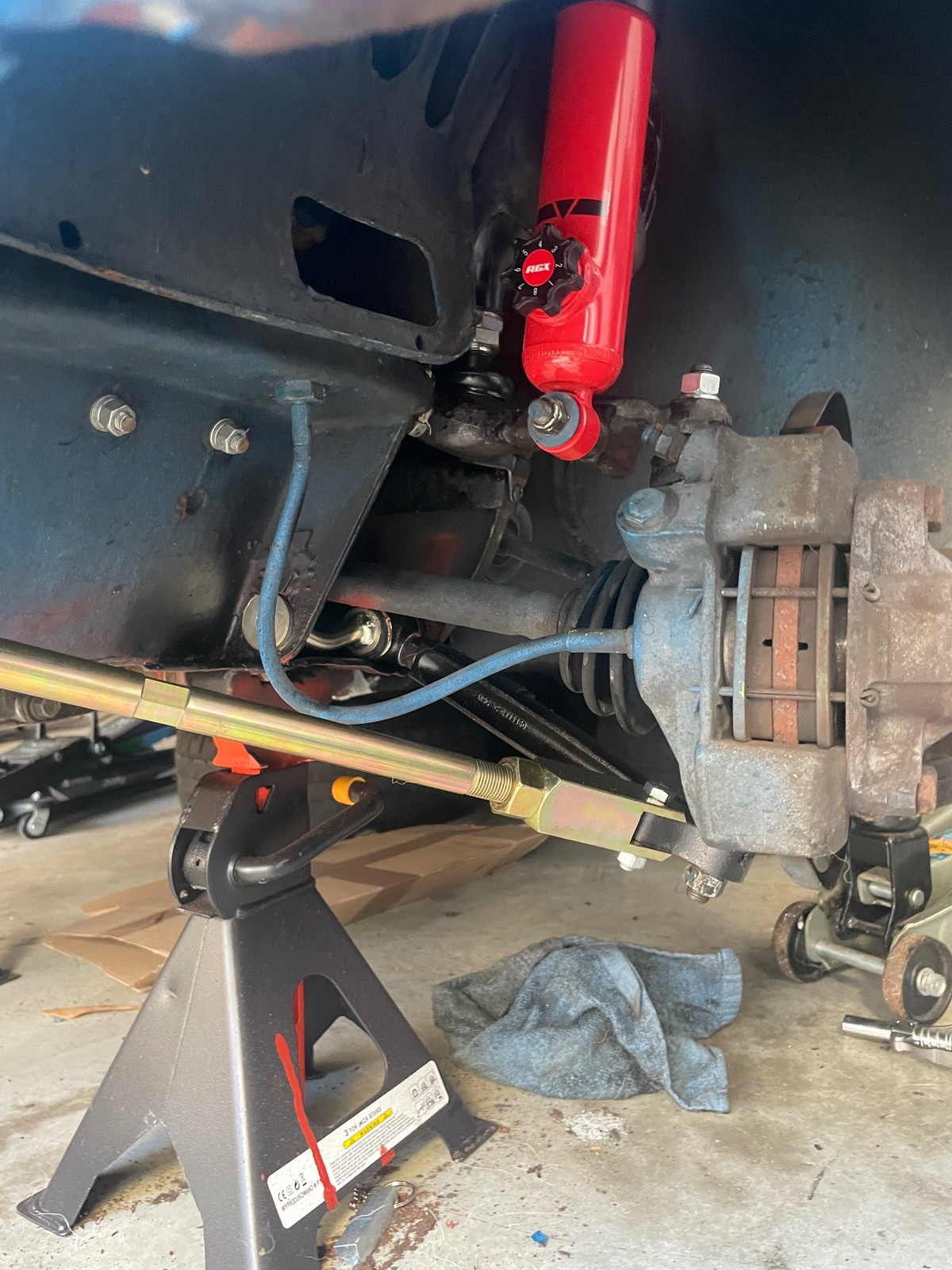 Bei mir am Estate hat ein gewisser A.H. aus O. die bei der technischen Abnahme zum Bergrennen in Bad Camberg moniert und darum gebeten, die mit Ksbelbindern hochzubinden…der TÜV hatte die vorher so bei der Abnahme des Umbaus auf Scheibenbremse und 1275er Motor abgenommen 😬.