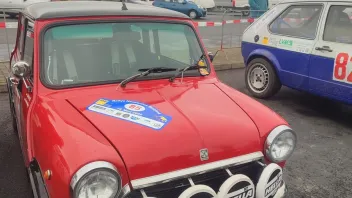 Innocenti Mini Cooper 1300 Bj.75 St. Nr.: 78 Erwin mit Katrin als Beifahrerin.