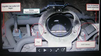 Sollte das nicht weiterhelfen, gibt es noch eine "einfache" Lösung. Im Kabelabzweig zum Drosselklappen-Poti ist definitiv ein pink/schwarzes Kabel, das direkt zum SJ5 läuft. Dann eben diesen Kabelabzweig auswickeln und das pink/schwarze Kabel bis zum SJ5 verfolgen...