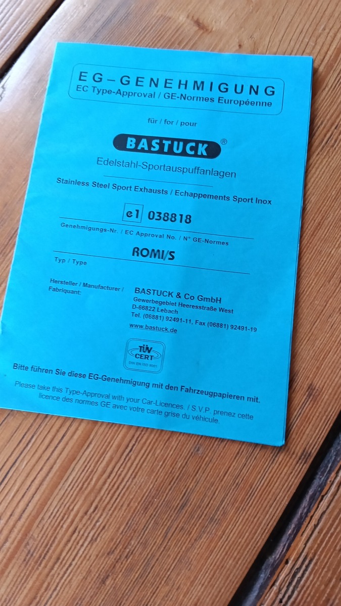 Bastuck Edelstahl Auspuffanlage mit EWG (blaues Gutachten, das anerkannz wird)
