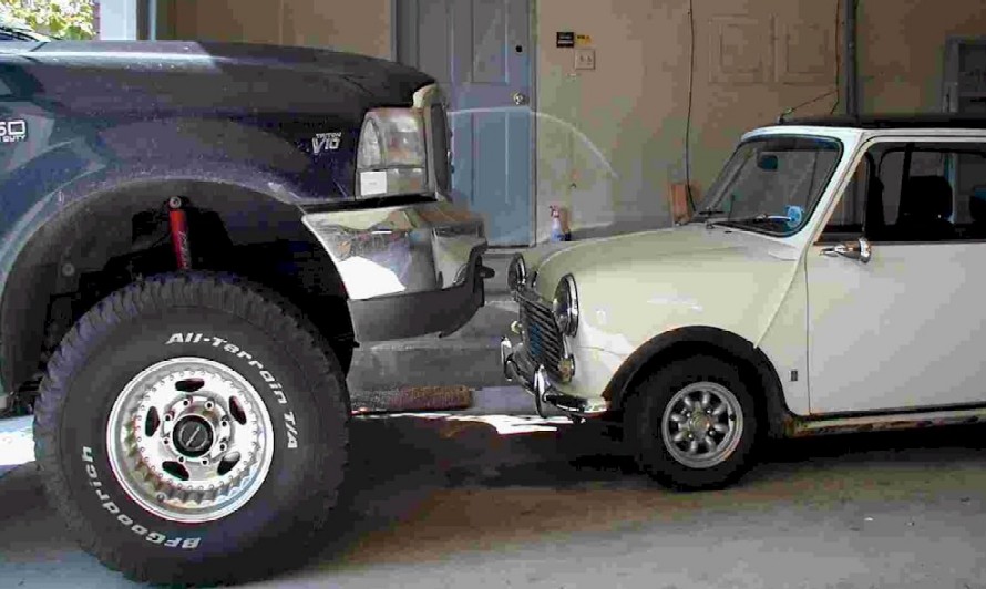 Bei Mini-Net war ein Mini neben einem Strassenkreuzer Bild des Monats.