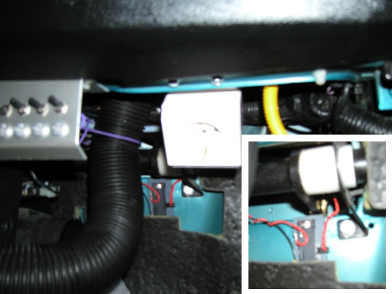 Ich habe auf der rechten Seite im Innenraum den Teppich zurückgeschlagen. Dort eine PVC platte auf das Blech geklebt! Auf dieses das Schiebepotentiometer (von Conrad aufgeschraubt. Dann hab ich einen massiven Draht an der Achse befestigt den ich aufder anderen Seite mit einer Schlaufe über den Hebel des Bremsgestänge gelegt habe. Dat wars!