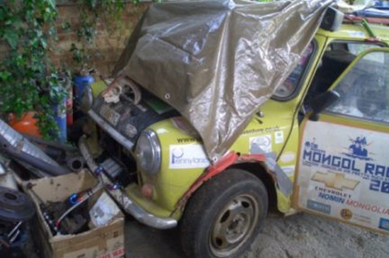 Er hat eine originale englische rote Telefon Box mit dem Mini über 16000 Meilen in die Mongolei geschafft