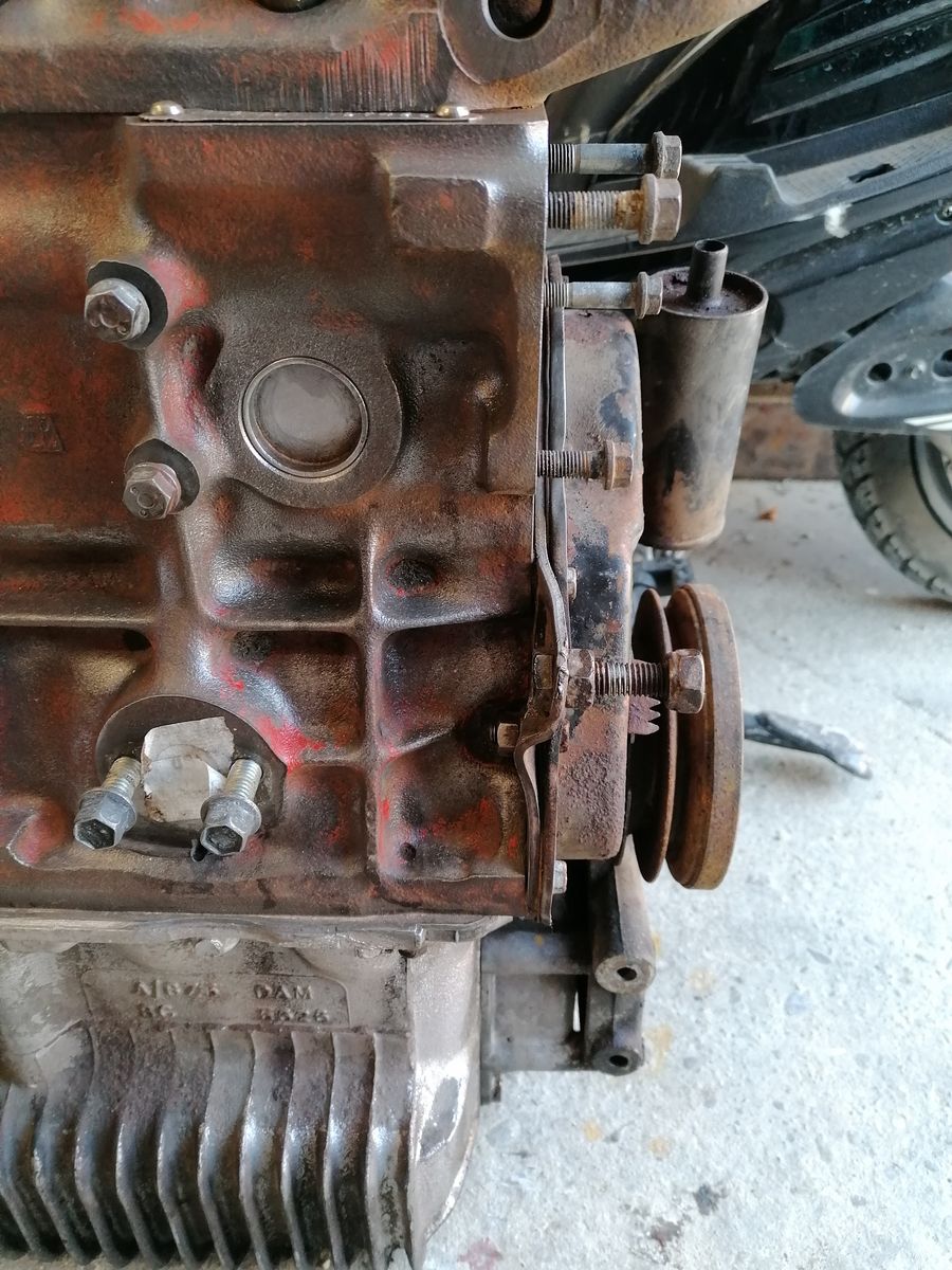 Sieht so aus, als hätte das Auto aus dem der Motor stammt, einen frontal-Crash gehabt... Und der Lima-Spanner hat dann die "Lasche" an der Frontplatte gestaucht... :eek:
