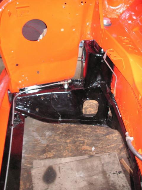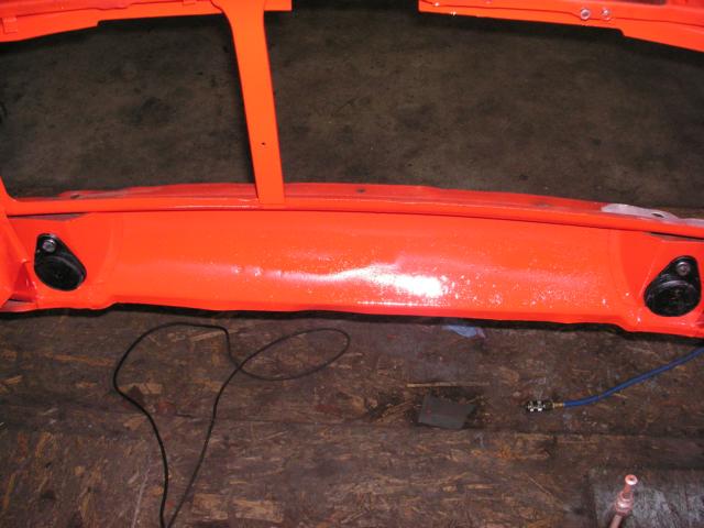 Der Motorraum wurde neu Auslackiert, (mit einer kleinen Airbruschpistole!) und die neuen Rahmenhalterungen montiert.....