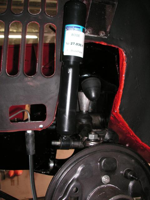 - Komplette Aufhängung vorne=> Jede Schraube ging zum Galvaniker, jedes Teil wurde durch meine Hochdruckdrahtbürste oder Sandstrahlkabine bearbeitet, danach neu Lackiert