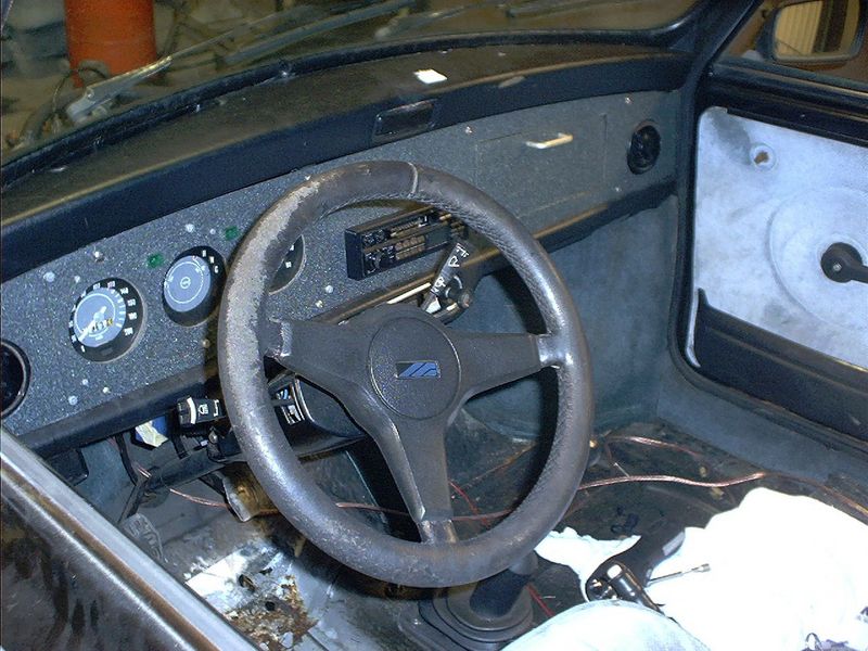 Die instrumente stammen aus einem etwas älteren mini (vor 90) und sind von smith und nicht aus japan. Sie wurden in plastik-armaturenbretter verbaut und manchmal mit holzverkleidungen "verschönert". Dabei handelte es sich bei der pastikarmatur nur um eine verkleidung des tachos, ein handschuhfach wurde erst durch die holzverkleidung geschaffen. Ein passendes bild wie das im orginal aussieht hab ich leider nicht, da diese variante oft als unschön empfunden wurde und umgebaut wurde. Dabei wurde meist auf mitteltacho oder auf ein wurzelholzarmaturenbrett wie es in den späten baujahren zum einsatz kam umgebaut.