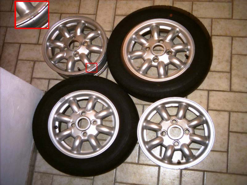 (Bei einer Felge ist der Lack auf 3 cm ein wenig abgeblättert).