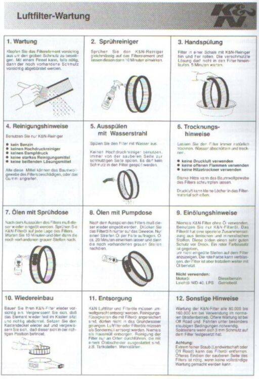 • Nicht kaputtmachen, die guten K&N. Dazu sind sie zu gut und zu teuer !