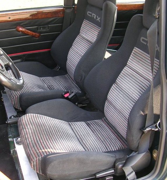 Ausserdem hat er: Höhen- und härteverstellbares Fahrwerk*, zeitgenössisches Blaupunkt R/C mit JVC-Lautsprechern, Wurzelholz im Innenraum (incl. Türgriffe und Schaltknauf), 300mm RAID Sportlenkrad*, CRX-Sportsitze (tief & weit hinten, auch für 190cm bequem, sehr gute Originalsitze anbei), Lenksäule tiefergelegt, weiße Blinker und weiße Rückleuchten.