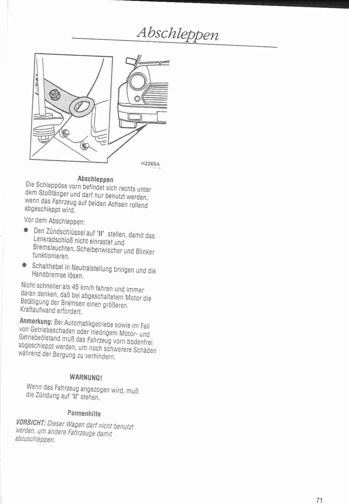 Übrigens: das mit der Servolenkung beim Abschleppen steht bei meiner Bedienungsanleitung nicht drin. Wirklich nicht.