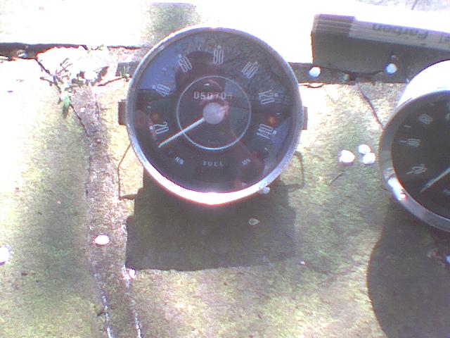 Mitteltacho für Cooper (weiße Kreislinien im Zentrum), Smiths, klassisch, Skalierung bis 140 km/h, Smiths-Nr.: SN 4417/01, gebraucht, Chromrand lagerbedingt mit Flugrost, Benzinanzeige fehlt,